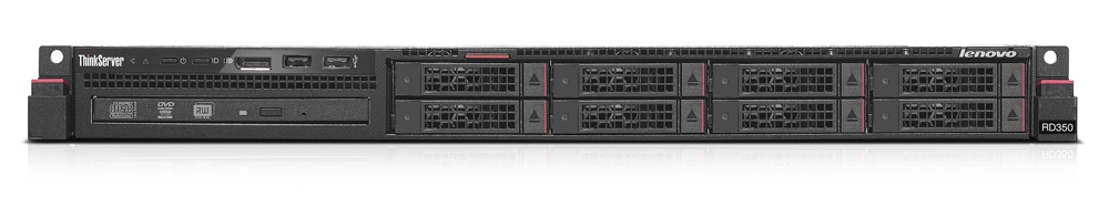 serwer Lenovo RD350, 1xXeon E5-2603 v3 6C/1.6GHz/15MB/85W/1600MHz, 1x8GB 2133MHz RDIMM, RAID110i, 8x2.5", O/Bay, No SD Module, DVD±RW, 1 Slot, No Discrete Ethernet, No TPM, Chassis Intrusion Switch, TSM, 750Wx1 Platinum, No Preloaded OS, Slide Rack Kit, 1-year Warranty