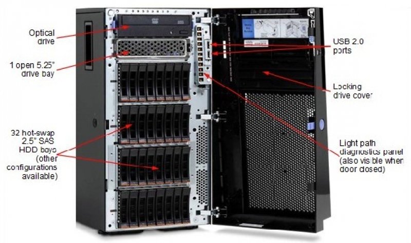 serwer Lenovo x3500 M4, Xeon 4C E5-2609 80W 2.4GHz, 1066MHz, 10MB, 1x4GB, O/Bay HS 2.5in SATA/SAS, SR M1115, DVD-ROM, 750W p/s, Tower