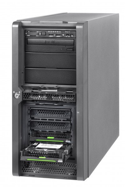 Serwer Fujitsu: TX140 S1p, 1x Intel Xeon E3-1230 v2 3.30GHz, 2x4GB DDR3 1600 ub d ECC, max. 32GB, kontroler: 0,1,10 SAS 2.0 (inne opcja), dyski: BRAK(HotPlug), LAN: 2x1Gb + 1Gb IRMC, DVD-RW, 2x hot-pl