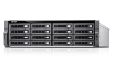 QNAP 16 (+4)-Bay TurboNAS, SAS 12G, SAS/SATA 6G, Xeon E5-2620 v3 2.4GHz, 128GB RAM, 4-LAN, 10G-ready, iSCSI, RAID 0,1, 5, 6, 10, 5+spare, 6+spare, 10+spare, global hot spare, max 32 GB RAM, max 8-LAN, PCIe expansion slot x4, redundant power supply, Without Rail Kit