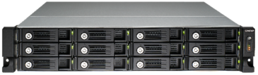 QNAP 12-Bay TurboNAS, quad-core Celeron 2.0GHz (up to 2.41GHz), 4GB DDR3L RAM (max 8GB), 4x GbE LAN, hot-swappable SATA 6Gb/s, HDMI, QvPC, hardware transcoding, redundant power, without rail kit