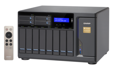 QNAP 12-Bay TurboNAS, SATA 6G, Core™ i5-6500 3.6 GHz, 16GB RAM, 4-LAN, 2x 10Gbase-T, 2x Thunderbolt port iSCSI, RAID 0,1, 5, 6, 10, 5+spare, 6+spare, 10+spare, global hot spare, max 32 GB RAM, PCIe expansion slot x3, 250W single power supply